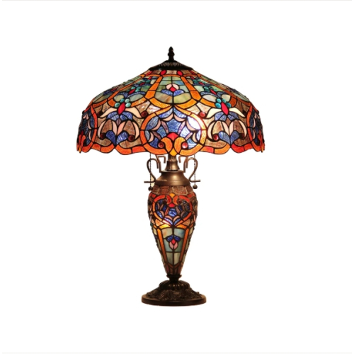 "DEMETRA AURORA" Tiffany-style 3 Light Victorian Double Lit Table Lamp 18" Shade