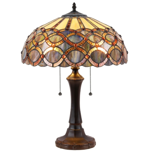 "TRISTAN" Tiffany-style 1 Light Double Lit Table Lamp 16" Wide